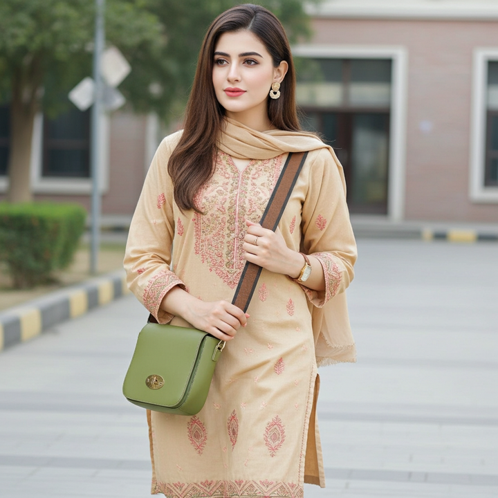 Effortlessly stylish, the Iconic Bag is a must-have for any wardrobe. Made of durable vegan leather, the cross body design offers convenience and comfort. With a spacious interior and front lock, it's the perfect accessory for both eastern and western wear. Add this versatile piece to your collection
