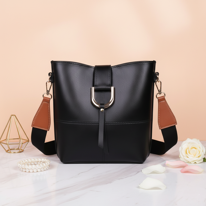 Elegant, minimalistic, and soft edges, this cross-body bag features a stylish pouch to hold your items in place and a hint of gold-tone hardware at the top handle covered with soft leather for comfortable handling, it also comes with a detachable strap that can be adjusted to give you multiple carrying options. Excellent size for everyday use.