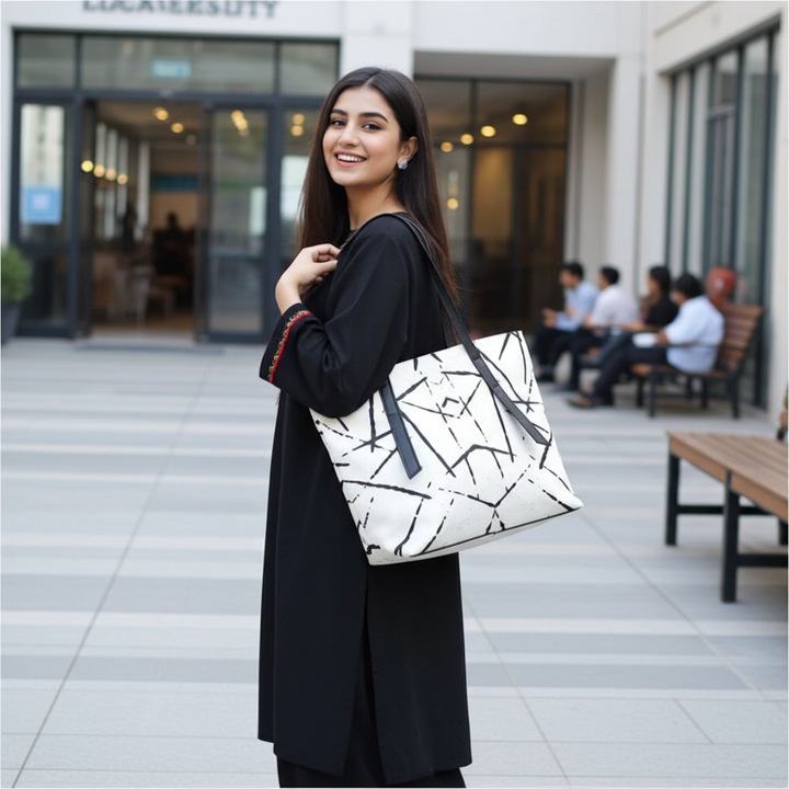 Our GRID tote bag is more than an accessory; it’s a statement. Crafted for the chic and the classy, it’s the perfect blend of practicality and design, offering ample room without compromising on style.