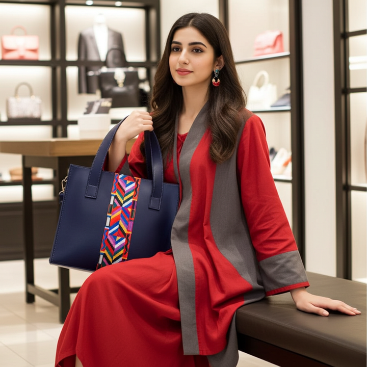 This Stylish Berlin Bag is made from premium vegan leather, making it a lightweight and durable accessory. The spacious main compartment has a top zipper closure to securely store your items with ease. The additional studs at the bottom of the bag provide extra protection against scratches, making it perfect for everyday use and university life. Inside the compartment with zip closure allows you to synchronize your belongings. The front contrast colourful stripe makes this trendy bag more attractive and matches with your gorgeous outfits.