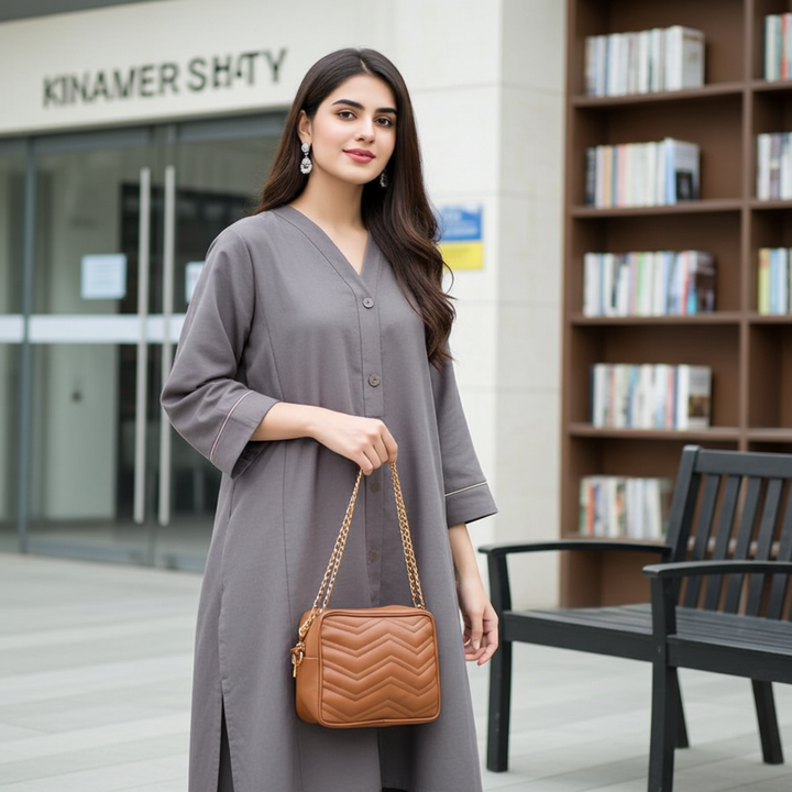 The Omni crossbody bag features a stylish and effortless design, complemented by a gold aluminum chain that adds a touch of elegance. This small bag is perfect for both eastern and western styles, and the detachable chain allows for versatile wear. Elevate your outfit with this fashionable and functional accessory.