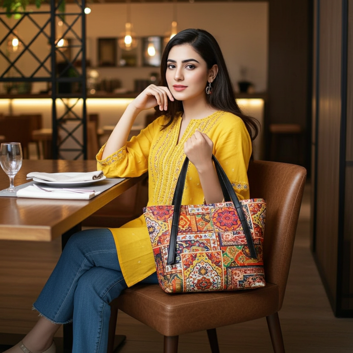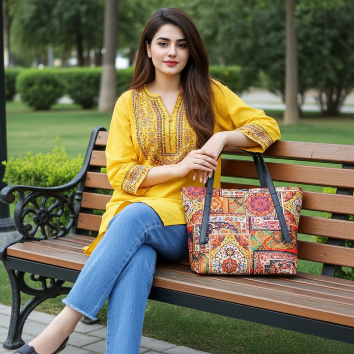 Our RHEA tote bag is more than an accessory; it’s a statement. Crafted for the chic and the classy, it’s the perfect blend of practicality and design, offering ample room without compromising on style.